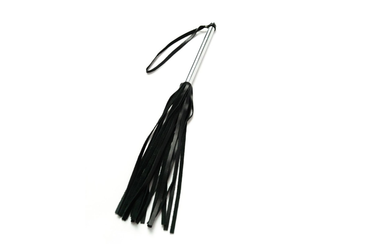 Многохвостовый флоггер с металлической рукоятью выполнен из натуральной кожи. Снабжен хромированной ручкой и удобной петлей для подвешивания.