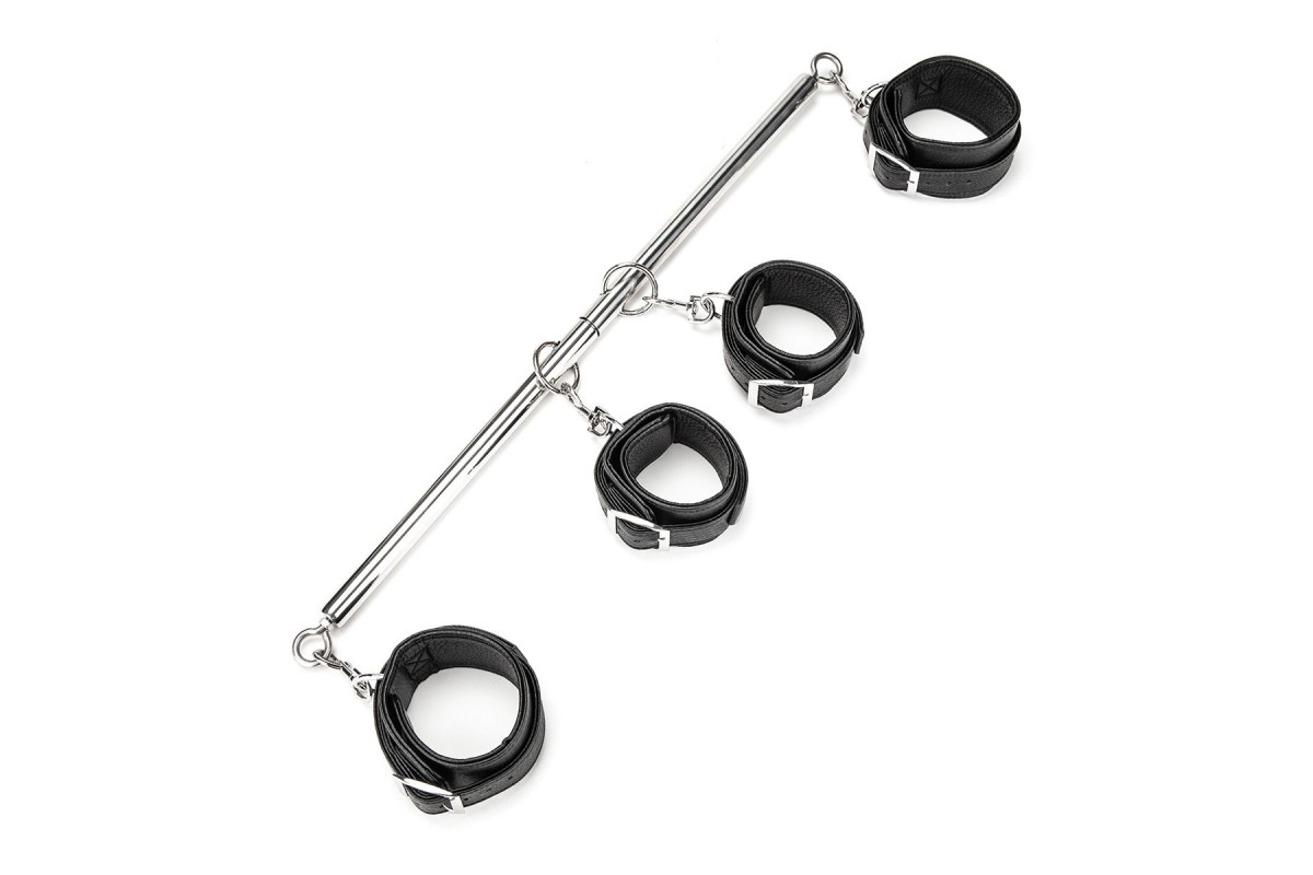 Получите полное господство над своим нетерпеливым партнером с помощью Spreader Bar с манжетами для запястий и лодыжек, которые зафиксируют его руки и ноги, чтобы надежно удерживать их в согнутом положении. Мягкие манжеты удобно фиксируются на ногах и руках и застегиваются на металлическую пряжку. Манжеты крепятся к быстроразъемным D-образным кольцам, которые легко снимаются при необходимости. Распорка может быть расширена, чтобы обеспечить более широкое положение фиксации и чтобы обеспечить лучший доступ к телу партнера. Наслаждайтесь этим аксессуаром для бондажа, который идеально подходит для всех пар в любых позах. Этот причудливый аксессуар удобно хранить благодаря своей форме и съемным фиксаторам. Длина распорки - 61-91 см.