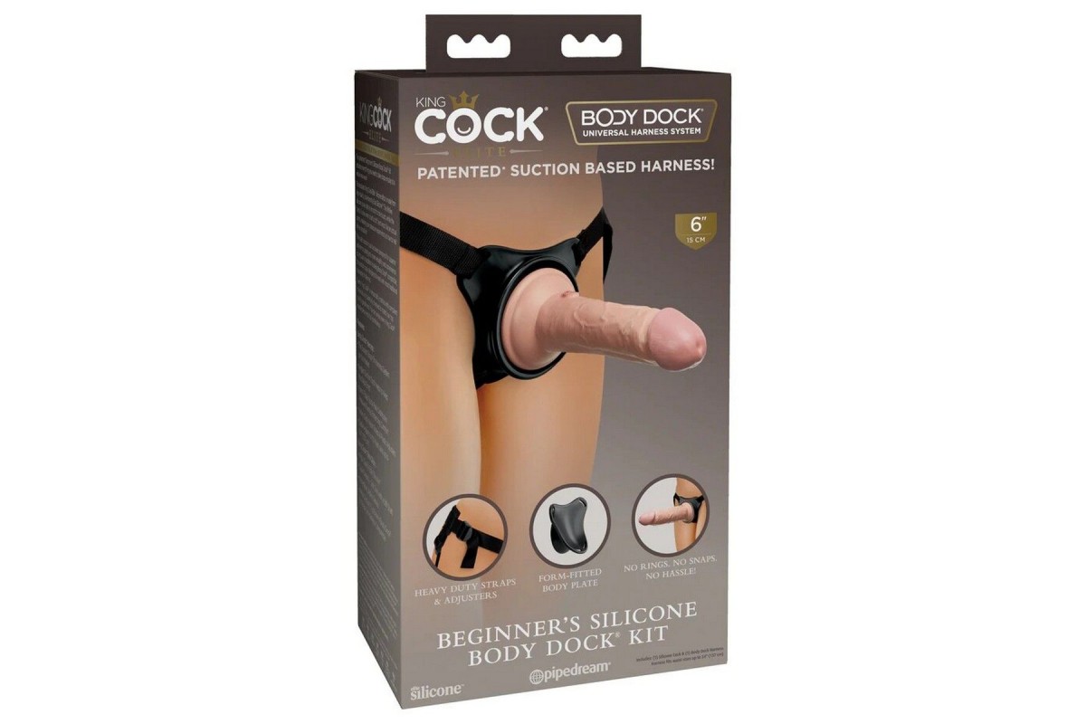Запатентованный комплект для начинающих Body Dock включает в себя всё, что вам нужно, чтобы поднять игру со страпоном на совершенно новый уровень! Входящий в комплект силиконовый фаллоимитатор King Cock Elite изготовлен из высококачественного Elite Silicone двойной плотности. Реалистичная силиконовая внешняя оболочка гладкая на ощупь, а твёрдый силиконовый внутренний стержень жёсткий и прямой, что делает ваше удовольствие максимально приближенным к реальной жизни! Твёрдая присоска была разработана для превосходного прилегания, что даёт вам больше универсальности и удобства во время использования. Диаметр стыковочной пластины составляет 86 мм, и на неё можно установить любой фаллоимитатор с присоской диаметром меньше этого размера. Пояс регулируется до 137 см в объеме бедер.