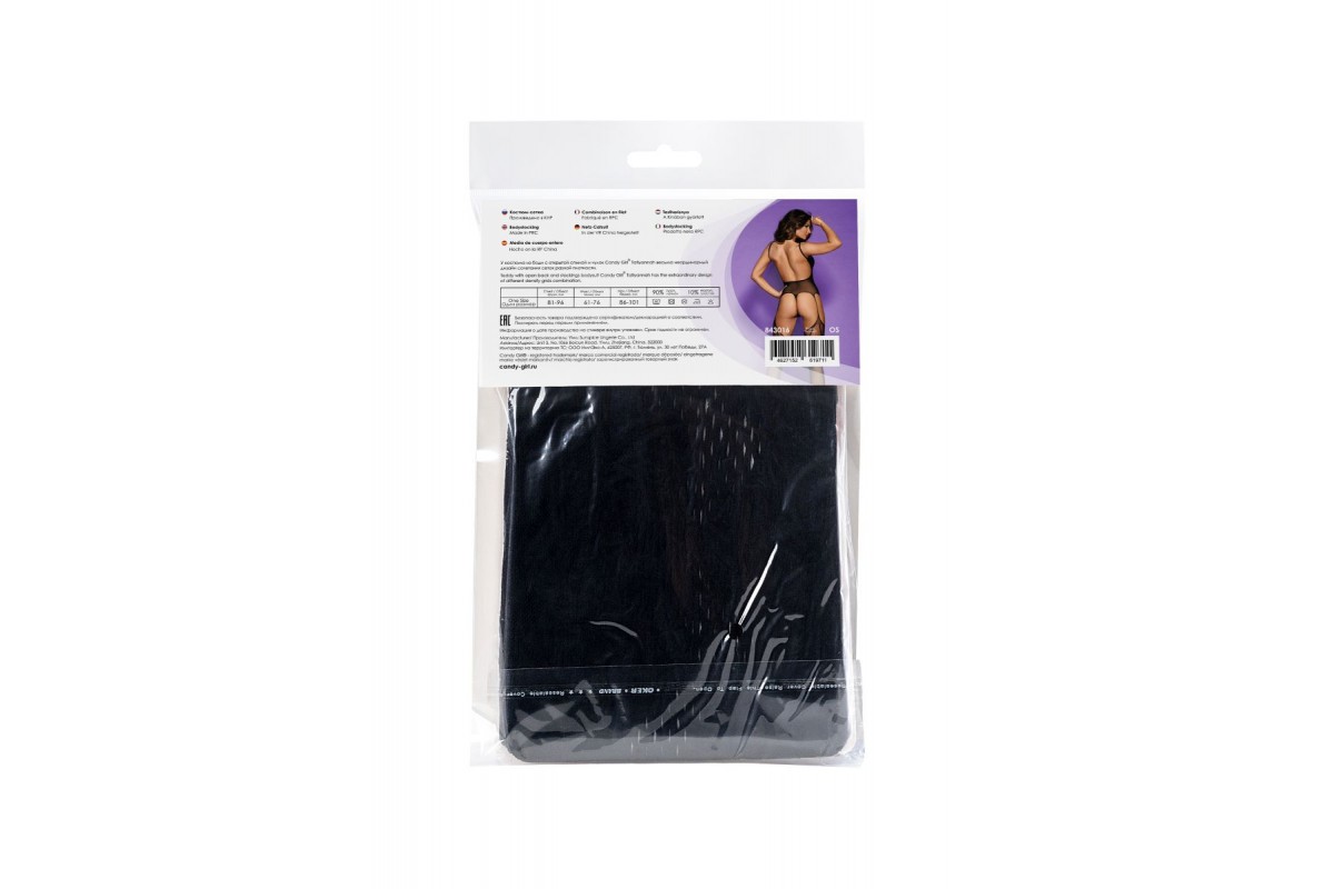 У костюма из боди с открытой спиной и чулок Tatiyannah весьма неординарный дизайн сочетания сеток разной плотности.