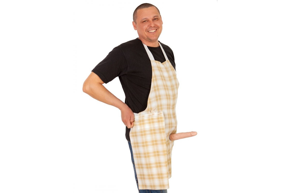 При открытии ткани правой рукой - фаллос поднимается . При закрытии двойной ткани обратно на липучку - фаллос опускается в висячее положение. В комплекте: фартук, фаллос. Длина передника - 70 см., ширина - 50 см. Длина фаллоса - 18 см., диаметр - 3 см.