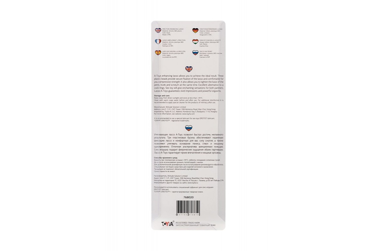 Утягивающее лассо A-Toys позволит быстро достичь желаемого результата. Три пластиковые бусины обеспечивают надежную фиксацию лассо и комфортную для вас силу сжатия, а также позволяют утягивать основание пениса, ствол и мошонку одновременно. Отличная альтернатива эрекционным кольцам. Секс-игрушка подарит феерические ощущения обоим партнерам. Лассо A-Toys гарантирует яркие впечатления и мощные оргазмы.