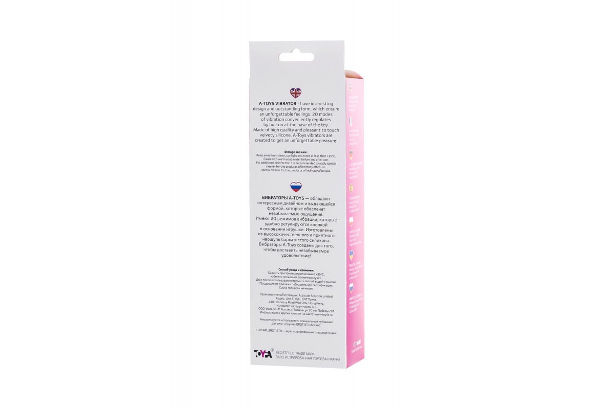 Вибратор A-Toys обладает интересным дизайном и выдающейся формой, которые обеспечат незабываемые ощущения. Имеют 20 режимов вибрации, которые удобно регулируются кнопкой в основании игрушки. Изготовлены из высококачественного и приятного на ощупь бархатистого силикона. Вибратор A-Toys созданы для того, чтобы доставить незабываемое удовольствие! Рабочая длина - 14 см. Минимальный диаметр - 2.4 см.