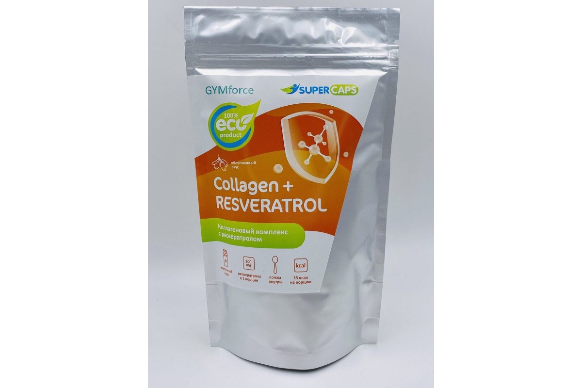Комплекс GYMforce Collagen+resveratrol для замедления старения клеток организма и кожи и повышения уровня антиоксидантной защиты организма. Ресвератрол – антиоксидант вечной молодости, который вырабатывается растениями для защиты от внешних патогенов. В природе встречается крайне редко, больше всего в кожуре красного винограда. Ресвератрол подавляет окислительную активность свободных радикалов и липопротеинов, предотвращает повреждение клеточной мембраны, помогает коллагену оставаться эластичным и замедляет старение на клеточном уровне. 1 порция (5гр) комплекса содержит 100 мг транс-ресвератрола с более высокой биодоступностью - это 333% суточной потребности, но не превышает максимально допустимую дозировку. Не является лекарством, БАД. Возможна индивидуальная непереносимость и аллергические реакции на компоненты комлпекса.
