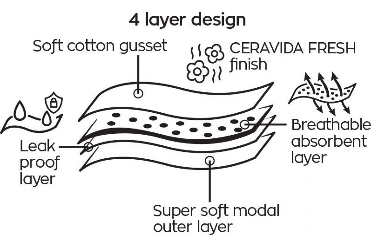 Трусы менструальные для особых дней, специально разработаны для комфорта женщины в эти дни, при легком недержании, в дорогу, надежно защищают от протеканий и неприятностей. Имеют несколько слоев: гелевый впитывает объем трех тампонов, абсорбирующий слой предотвращает появление запаха. Дышащие, мягкие, гипоаллергенные. Выдерживают 50 стирок, что равняется 10 менструальным циклам, тем самым экономичны и сохраняют окружающую среду от загрязнений предметами личной гигиены. Будьте современны, ощутите полностью комфорт и надежность технологий!