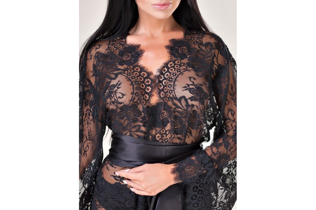 Роскошное женское кимоно из ажурного кружевного полотна - главная вещь в Вашем будуарном гардеробе. Полупрозрачный материал прикрывает тело, притягивая взгляд и включая фантазию. Широкий атласный пояс с вышитым логотипом Opium.