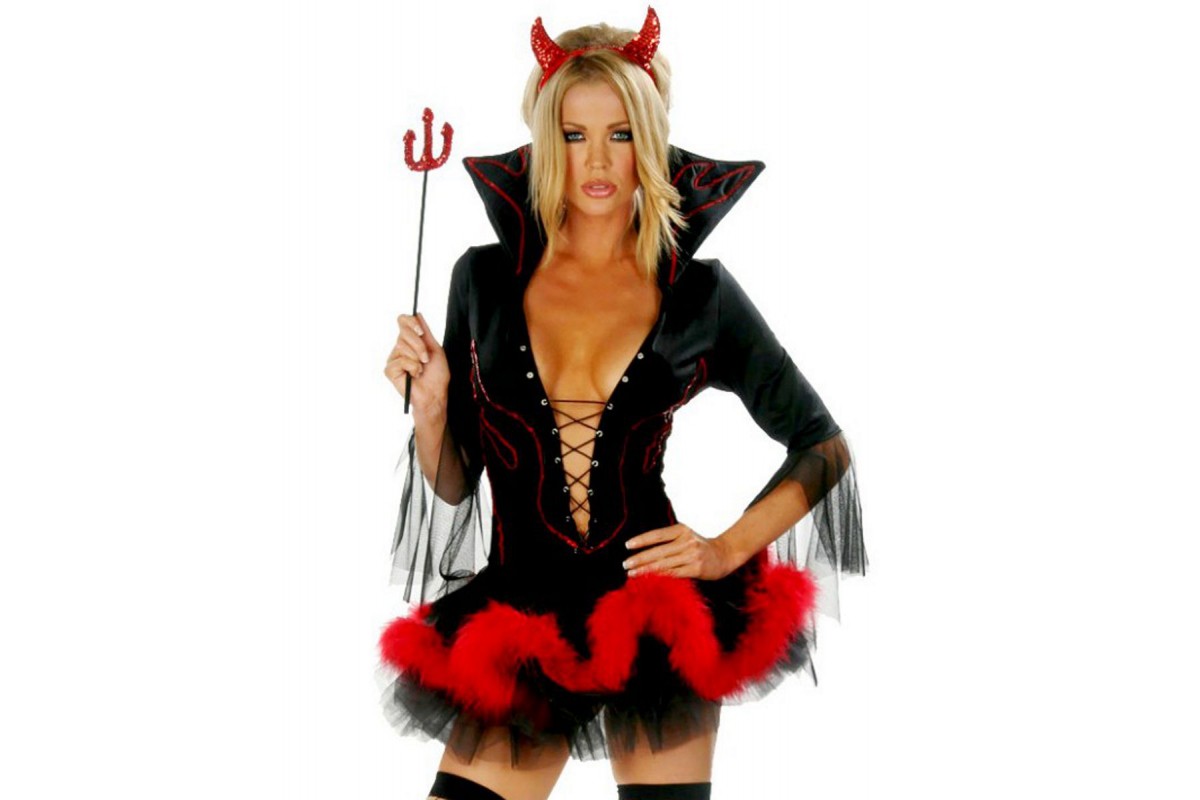 Когда на вас этот потрясающий костюм верховной дьяволицы, мужчина и не подумает вам перечить. Любой ваш приказ будет исполнен немедленно, и угрожать трезубцем не придётся! Умопомрачительный вырез на шнуровке, короткая пышная юбочка, игривая бахрома и ярко-красные рожки… «Моя душа теперь твоя, о, повелительница». В комплекте: платье с подъюбником и перьями марабу, трезубец.