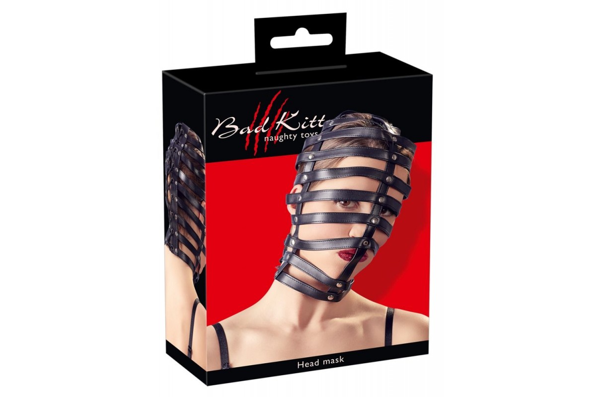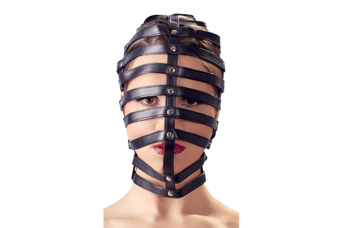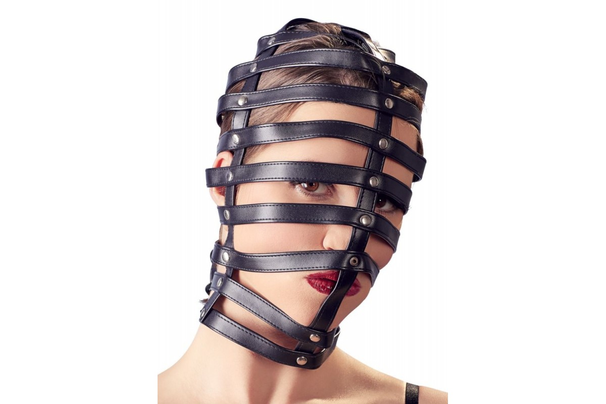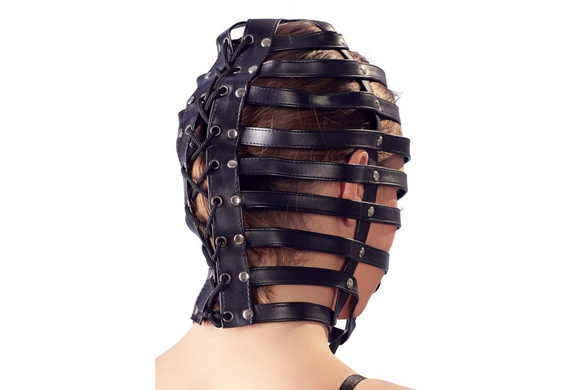 Маска-клетка Head Mask Cage. Выполнена из полос, соединяемых перемычками. Сзади затягивается на шнуровку.