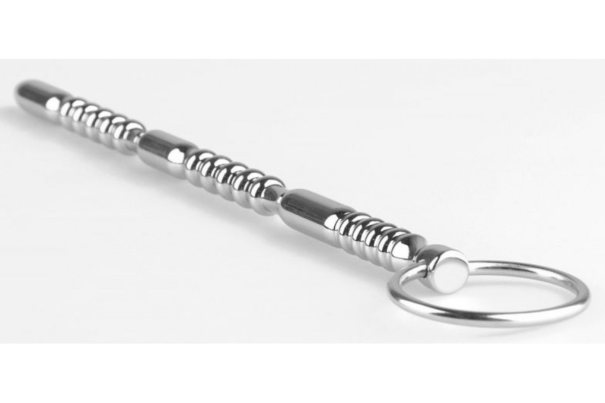 Серебристый фигурный уретральный стимулятор с кольцом - 20,5 см.