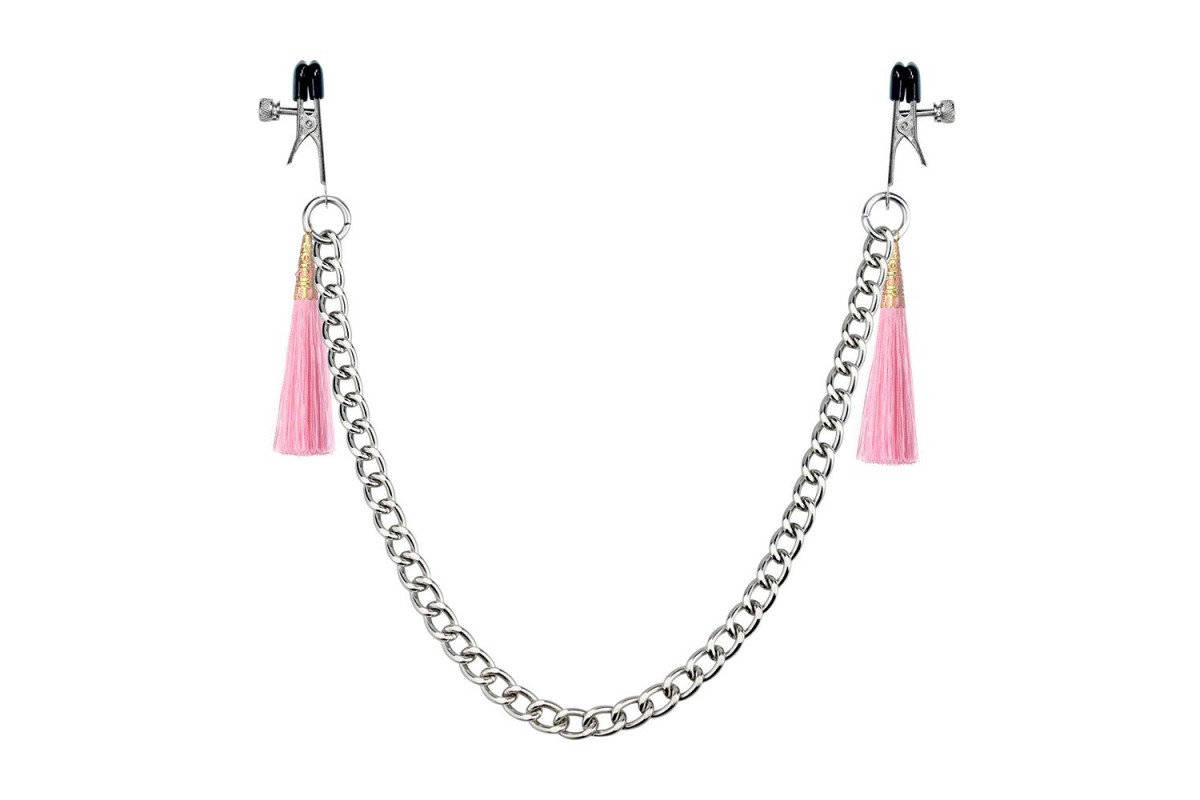Регулируемые зажимы для сосков с кисточками, прекрасно разработаны для интенсивной приятной боли. Опрокинутые в силикон для мягкой застежки, они идеально подходят как для начинающих, так и для профессионалов. Длина цепочки - 30 см.