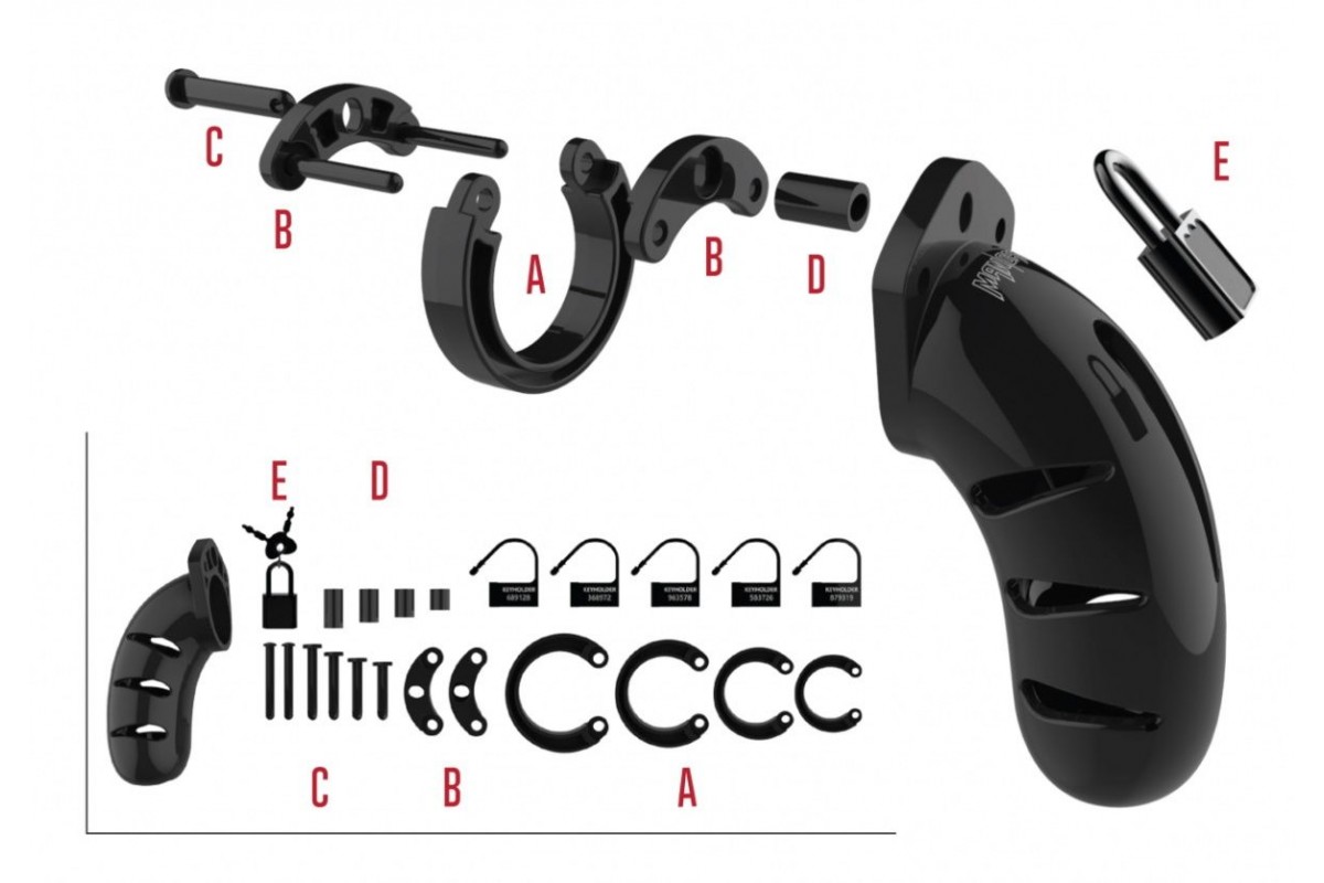 Cock Cage Model 07 Chastity 3.1 – специализированное приспособление для мужчин, предназначенное для предотвращения эрекции, полового акта или мастурбации. В комплект входит железный замок и тонкая гибкая лента высокой прочности. Диаметр колец - 4, 5 и 6 см.