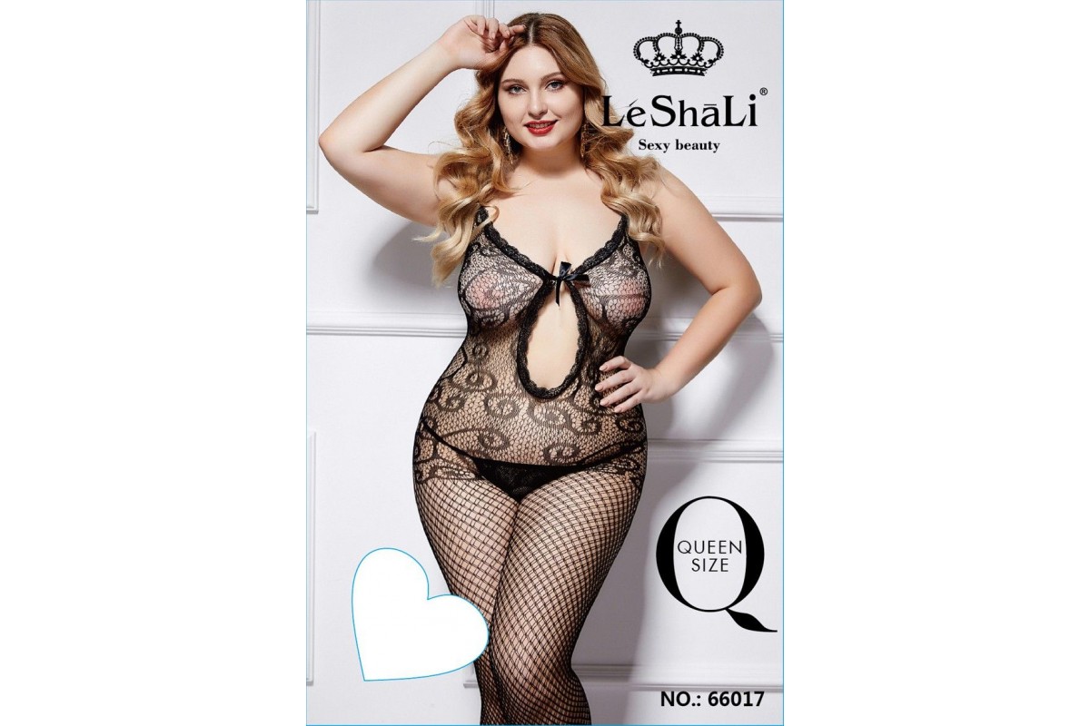 Комбинезон прикрывает тело от самых пяточек, а вверху полностью оставляет руки, декольте и спинку и немного открытыми, смотрясь как прозрачный бюстгальтер. Нижняя часть наряда украшает ножки крупной и невероятно соблазнительной для большинства мужчин крупной сеткой, а верх выполнен из ажурного материала, декорированного элегантными узорами. Такое сочетание, смотрится не только оригинально, но и особенно возбуждающе. Ну а вишенкой на торте здесь является пикантный вырез на животе, который можно сделать более откровенным и обнажить грудь, развязав элегантный бантик. Трусики не входят в комплект!