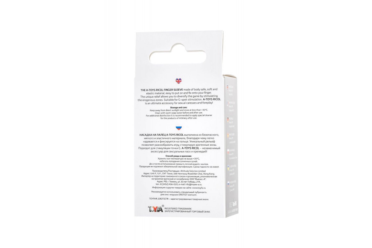 Насадка на палец A-Toys Ricol выполнена из безопасного, мягкого и эластичного материала, благодаря чему легко надевается и фиксируется на пальце. Уникальный рельеф позволяет разнообразить игру, стимулируя эрогенные зоны. Подходит для стимуляции точки G. A-Toys Ricol – незаменимый аксессуар для сексуальных ласк и прелюдий!