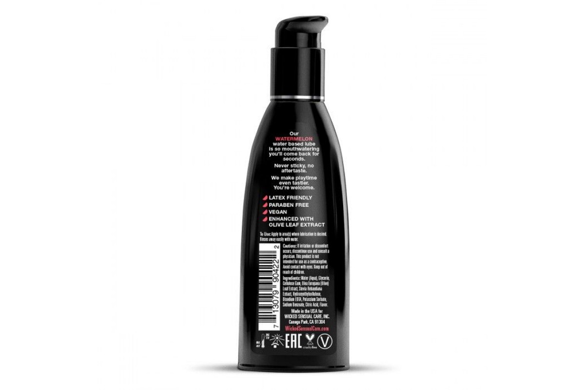 AQUA Watermelon - это нежный лубрикант на водной основе со вкусом освежающего арбуза для изумительных эротических ласк. При производстве Wicked не используется сахар, сладость придает выжимка из растения стевия, благодаря чему лубрикант не оставляет послевкусия, не липнет и дарит удивительное ощущение скольжения. В составе лубриканта есть экстракт оливкового листа, который является природным обеззараживающим средством, мягкая формула подходит даже для чувствительной кожи. Удобная упаковка с помпой поможет насладиться моментом близости в полной мере. Не содержит парабенов, безвреден для латекса.