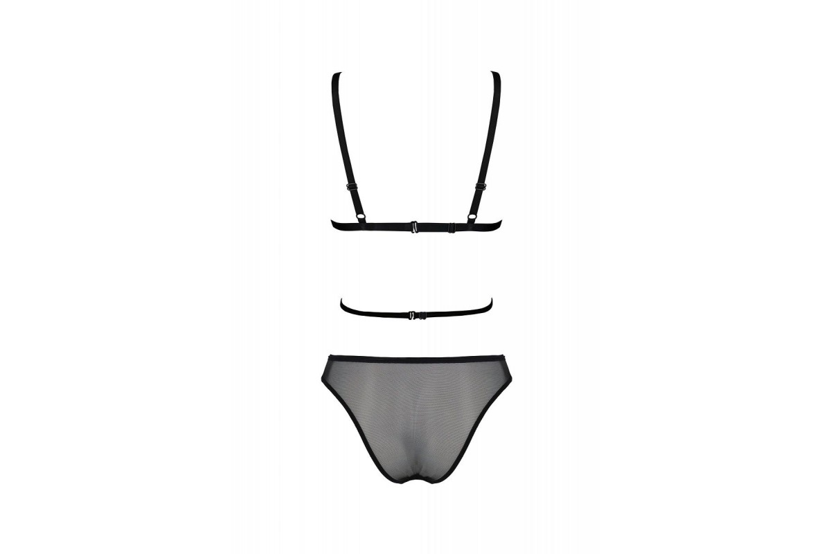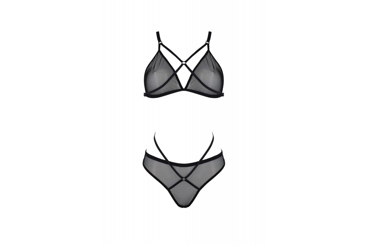 Полупрозрачный комплект белья Varella с модными стрэпами обещает незабываемые моменты в спальне с любимым. Изготовлен из переработанных материалов. Приятен на ощупь и полностью безопасен для кожи и тела. Волнующе полупрозрачный тюль будоражит воображение. Тонкие эластичные стрэп-ленты эффектно перекрещиваются спереди, добавляя образу изюминку. Бюстгальтер с мягкими чашечками и стрэпами на груди выделяет зону декольте. Бретели и стрэпы регулируются по длине. На спине застежки для наилучшей посадки по фигуре. Трусики подчеркивают округлость ягодиц. Стрэп-ленты спереди выделяют талию. В комплекте: бюстгальтер, трусики.