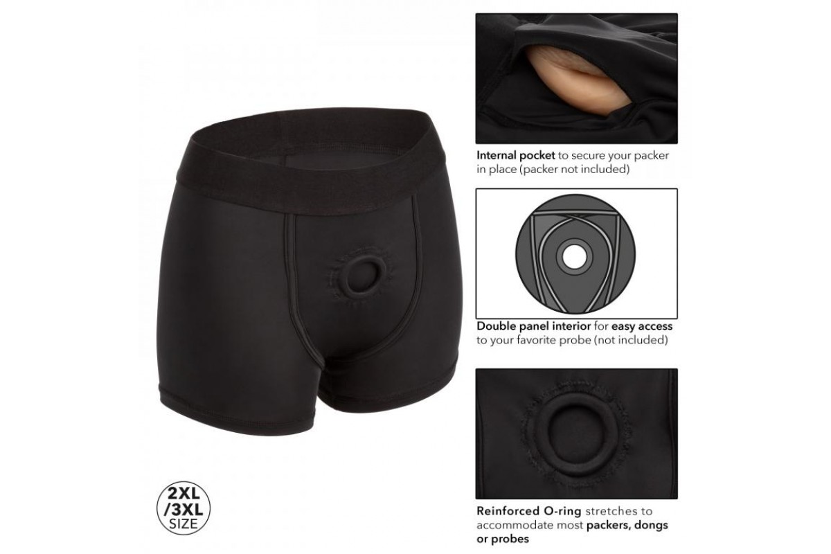 Трусы-боксеры Boundless Boxer Brief Harness имеют очень широкий пояс, мягкую эластичную ткань и усиленное уплотнительное кольцо для максимальной поддержки страпона. Размер трусов - L/XL.