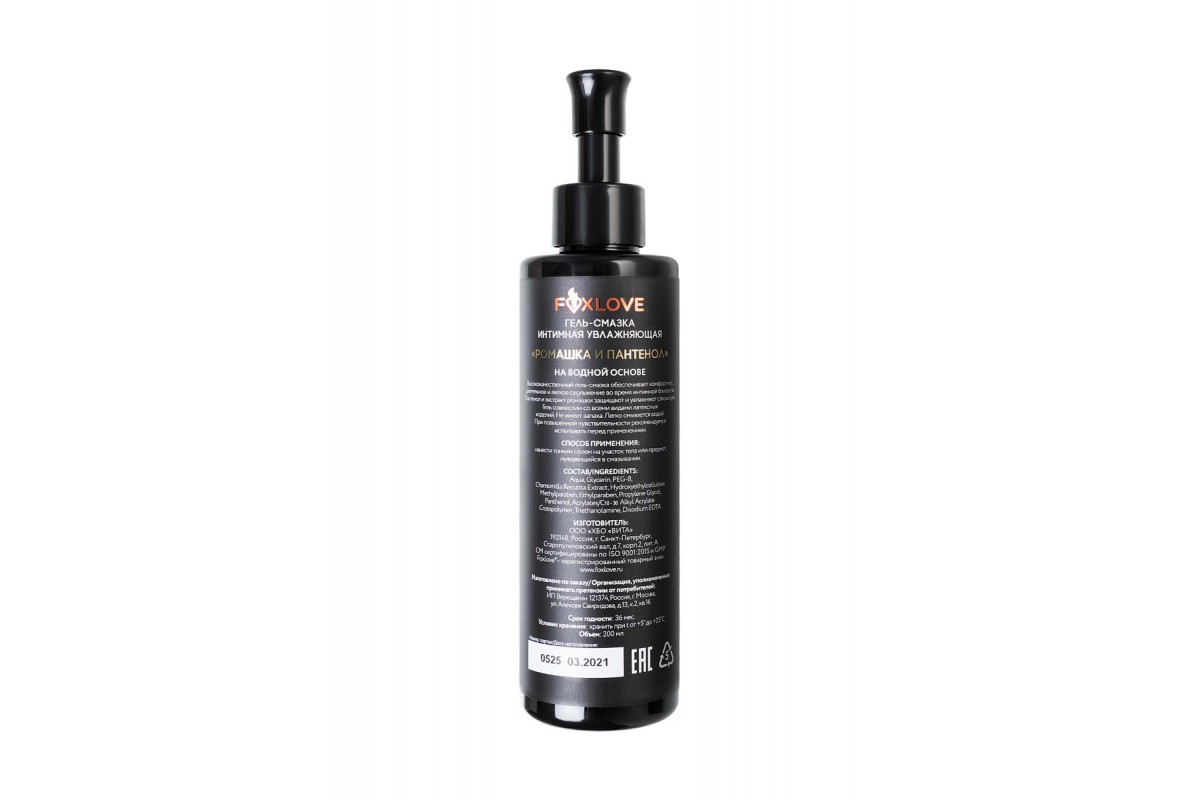 Нежный и натуральный интимный гель Foxlove имеет органический состав – 100% безопасно, гипоаллергенно и надежно. Благодаря отсутствию искусственных добавок, животных жиров, парабенов и ароматизаторов, смазка идеально подходит для чувствительной кожи. Экстракт ромашки увлажняет и успокаивает нежные ткани, способствует длительному и легкому скольжению. Пантенол обладает регенерирующими свойствами – заживляет и восстанавливает микроповреждения на слизистых. Гель-смазка на водной основе обладает нежной текстурой, не оставляет липких и жирных следов, не имеет запаха и вкуса. Оптимальный объем флакона позволит не думать о том, что смазка кончится в неподходящий момент. Удобный дозатор контролирует расход, что экономически очень выгодно, а защита от вскрытия даст уверенность в том, что вы являетесь первооткрывателем вашего флакона. Интимный гель совместим со всеми видами презервативов и секс-игрушек.