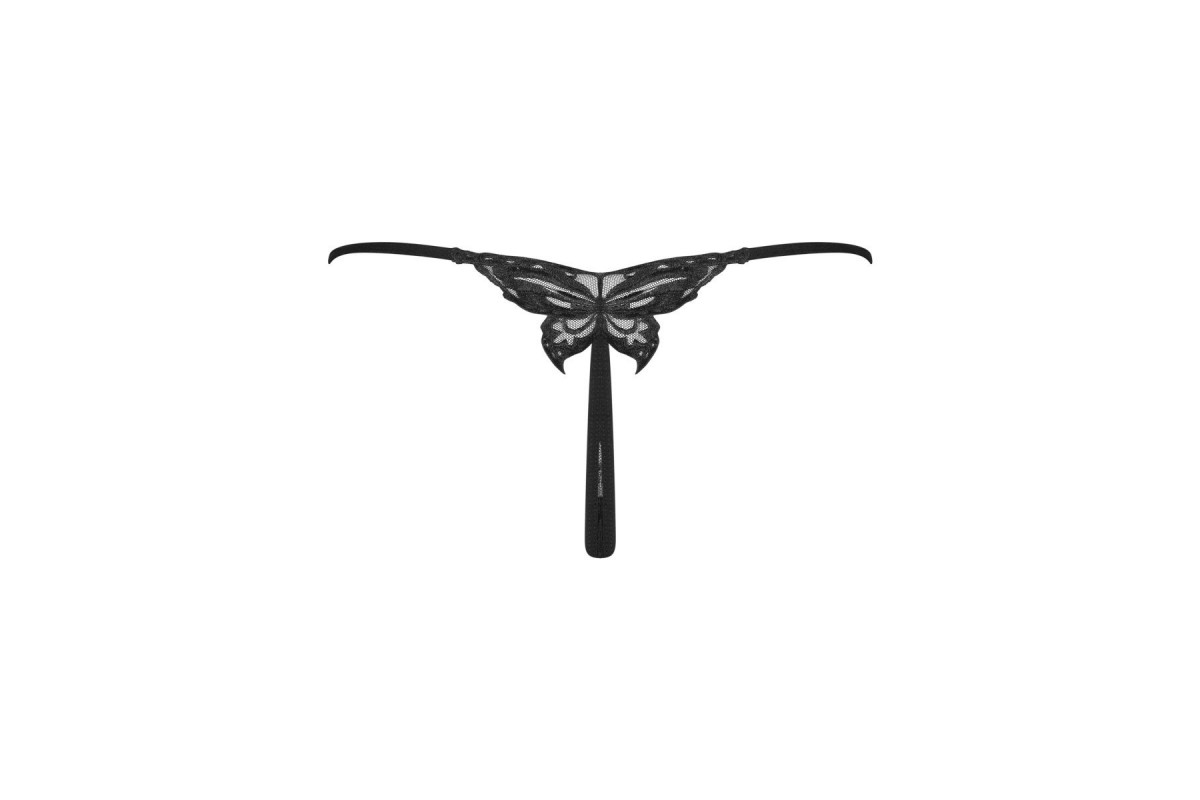 Очаровательные трусики-стринги из гипюра из коллекции Kokietta, с тонкими союзками, на спине украшены аппликацией в виде бабочки.