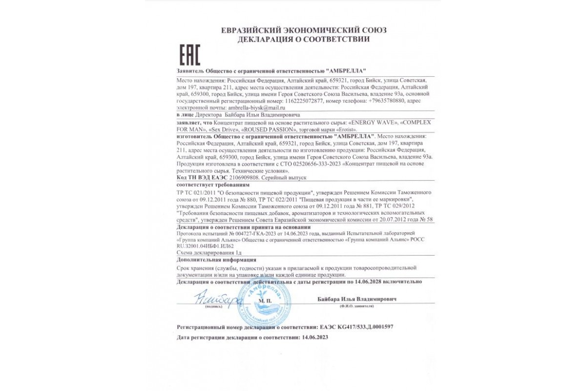 Сексуальная сила и выносливость – залог успешной интимной жизни и количества восхищенных женщин. Erotist Booster на страже твоего сексуального здоровья и долголетия. Пищевая добавка на основе растительных компонентов COMPLEX FOR MAN – это уникальное сочетание экстрактов 14 целебных трав и природных компонентов, совместная эффективность которых способствует повышению сексуального влечения и улучшению эректильной функции.